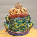 ライフワークである、大地から生まれたような力強い鬼や不動、又は京都の煎茶茶陶に携わる、繊細なデザインと上絵付。見てくださる方、手に取ってくださる方に、元気と幸せをお届けしたいのが作陶のテーマです。